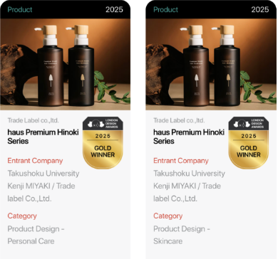 英国の国際デザインコンペティション 「London Design Award 2025」にて、Product Design personal care部門、Product Design skincare部門の2部門で 「GOLD WINNER賞」を受賞しました。